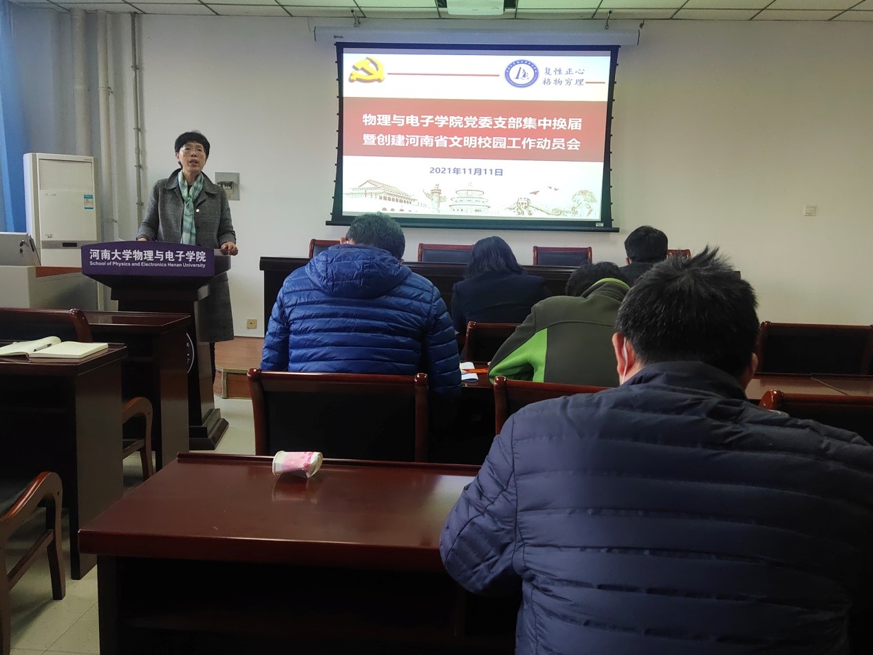 11月11日下午,bellbet贝博艾弗森官方网站在学院A313召开bellbet贝博艾弗森官方网站党委支部集中换届暨创建河南省文明校园工作动员会。学院党委委员、组织员、党政领导班子成员、党支部书记、系室主任、科室主任及各年级辅导员参加会议。会议由学院党委书记王宏华主持。