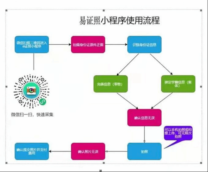 为保证我校成人高等教育毕业生图像信息采集工作顺利进行,根据疫情防控的相关要求,尽量减少学生聚集活动,经与图像采集实施方沟通,2022年毕业生图像信息采集工作采用“线上”方式进行,学生可通过微信端“易证照”小程序,利用手机自行完成毕业生图像信息采集工作(见附件)。具体有关事项通知如下: