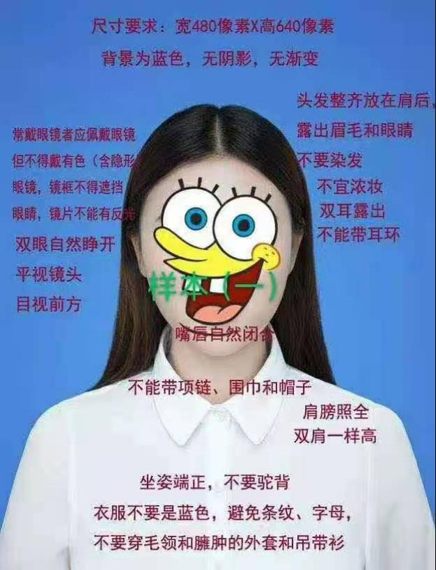 3.图像信息须正面免冠,禁穿蓝色衣服(背景为自动生成天蓝色),具体要求见下图。
