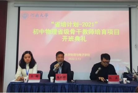 3月13日上午,“省培计划-2021”初中物理省级骨干教师培育项目开班典礼在尚客优快捷酒店(新河大店)3楼会议室举行。bellbet贝博艾弗森官方网站副院长魏高明、继续教育办公室主任向兵、班主任王珊等有关负责人和来自全省各个县区近50名初中物理精英教师参加了开班典礼。