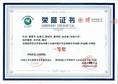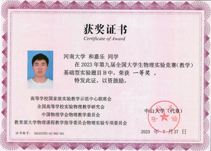 第九届全国大学生物理实验竞赛一等奖 | 第十五届中国大学生物理学术竞赛一等奖 |