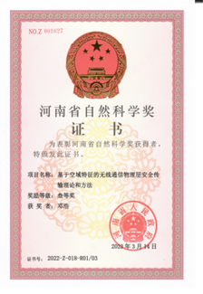 部分河南省自然科学奖证书 |