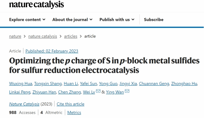 近日,bellbet官网化五星博士和上海师范大学万颖教授团队、清华大学深圳研究生院吕伟副教授团队等合作,在Nature Catalysis上以Article形式发表了题为Optimizing thepcharge of S inp-block metal sulfides for sulfur reduction electrocatalysis的研究成果,将实验可测量的p电荷密度作为描述因子用于筛选高活性锂硫电池催化剂。