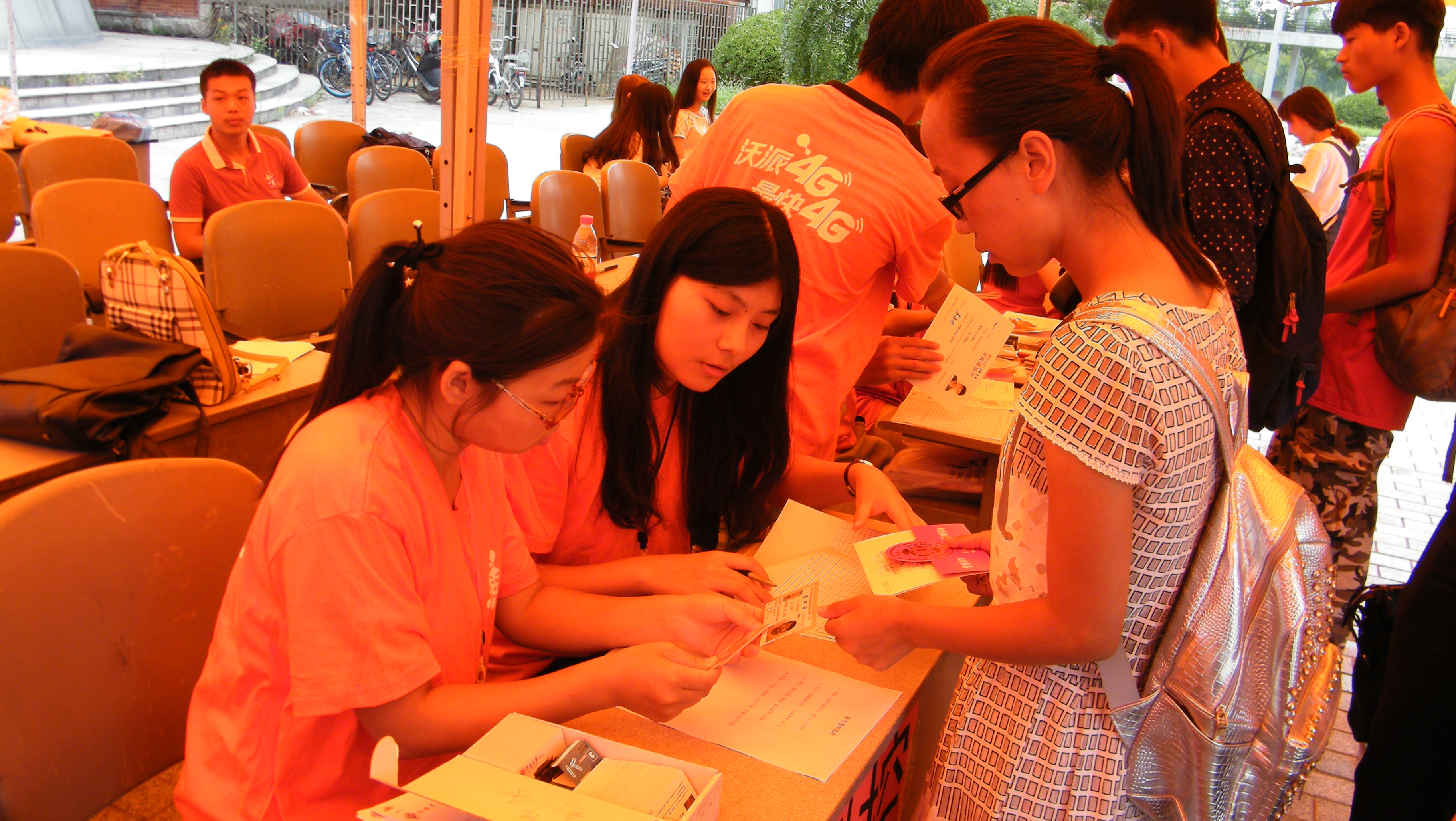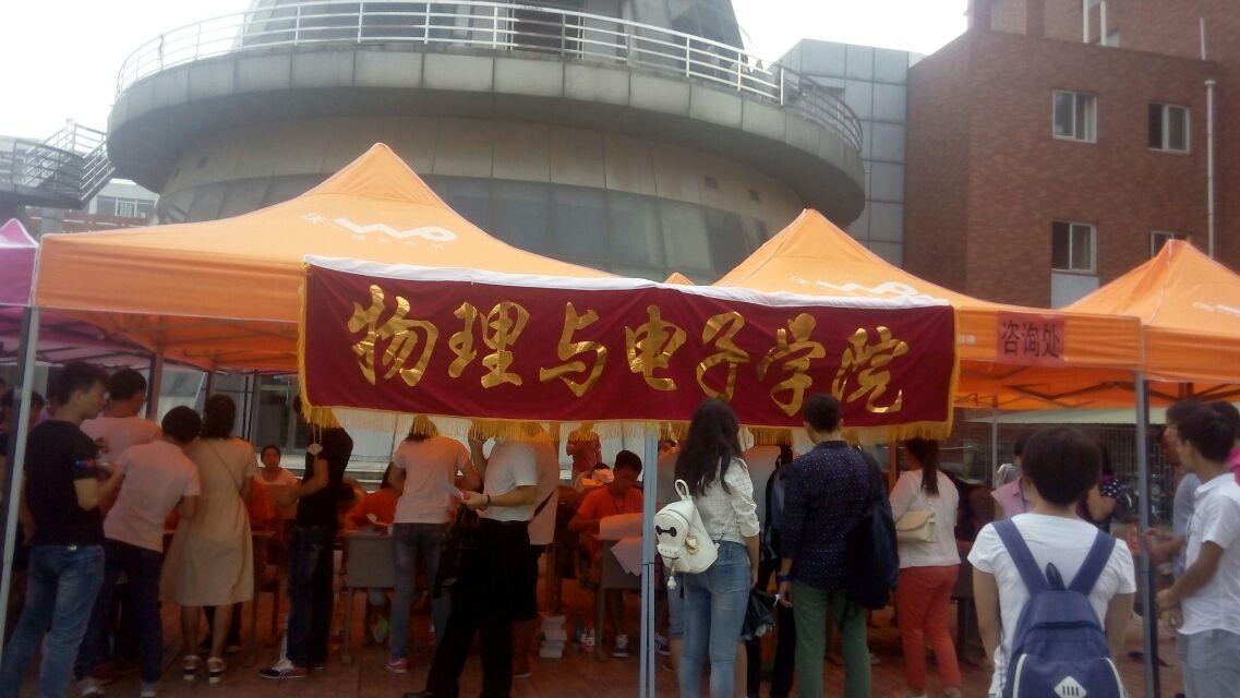 学院在物理楼B楼前设置了新生报到区、缴费区、家长休息区、免费饮水点,流程清晰,秩序井然。迎新工作人员当场向学生及家长介绍学院情况、专业情况、学习活动等方面情况,介绍国家和学校有关资助政策,为家庭经济困难学生办理了“绿色通道”手续,确保他们都能顺利入学。各系还安排了志愿者全程服务新生,新生及家长在志愿者的引导下,能顺利依次完成报到、缴费、入住寝室等各个环节。