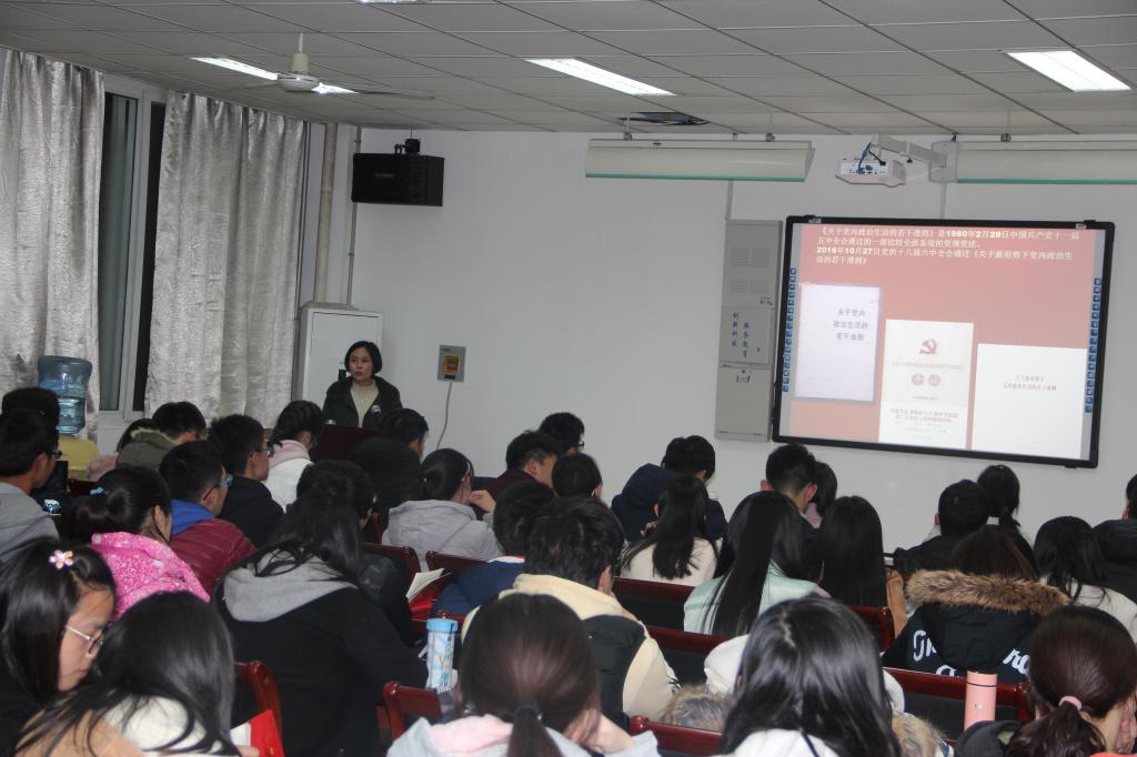 3月23日下午,开班仪式在学院B406报告厅举行。院党委委员、党办主任刘寒冰宣读《bellbet贝博艾弗森官方网站党课培训班纪律要求》并对相关事宜进行安排。院党委书记王宏华以《从党的性质、指导思想谈端正入党动机》为题主进行第一讲。此后,纪检监察员张秋梅讲授《党章解读—共产党员的条件》、马克思学院教授马树功讲述《坚持中国特色社会主义信念,为实现共产主义而奋斗》、学院党委副书记乔石豪讲述《延安精神及其时代价值》、校党委组织部组织科科长张烁主讲《正确履行入党程序》、院党办主任刘寒冰主讲《党的基础理论知识》。党课中间还以观看红色电影、召开座谈会等形式,以各年级为单位进行研讨活动。