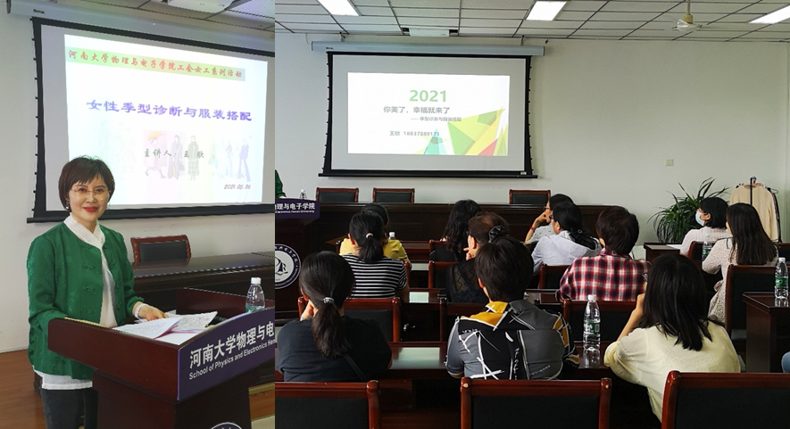 为了提升生活品味,陶冶情操,丰富业余生活,使广大女教职工拥有自信、健康、快乐的心情,bellbet贝博艾弗森官方网站工会自年初以来,开展以“爱生活·知性美·与健康同行”为主题的女工系列活动。继三月春日游园亲子活动之后,5月26日,院工会邀请专业人士王欣、王一两位女士,在学院A313会议室分别作了“女性季型诊断与服装搭配”与“插花艺术与花艺设计”两场专题讲座。