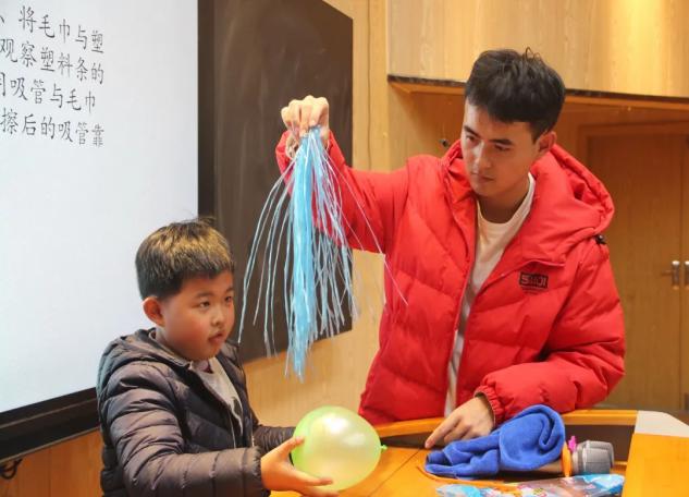 此次活动期间,bellbet官网志愿者结合小学生身心成长的特点,制作了别具特色的物理小实验,为他们打开奇妙的科学探索之窗。志愿者们通过展示“小小照相机、动力小船实验、潜艇的制作实验、潜望镜观察实验、非牛顿流体实验、静电现象、水的表面张力、大气压强、陀螺仪、重力重心、光、水”等一系列具体生动有趣的实验,介绍了包括“附壁效应、压强、小孔成像、非牛顿流体、静电现象”在内的多个物理现象或名词,深入浅出的讲解了生活中常见的物理知识,有意识的引导小学生联系生活实际分析物理现象,使孩子们在好奇和实践中逐渐培养物理学习兴趣。