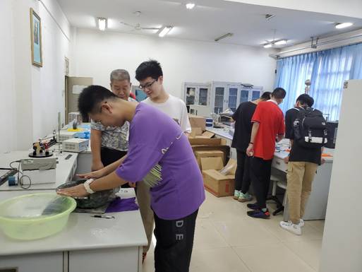 导师见面会结束后,导师组组织了暑期集中培养活动。戴树玺教授做了“仿生界面材料”的精彩报告,报告中提到的荷叶效应和花瓣效应激发了同学们极大的兴趣。在实验室参观和创新实验演示环节,同学们参观了电池制备室,了解了锂电池制备过程;在大学物理实验室,观摩了力热光电一系列创新实验,一部分同学还亲自尝试了共振现象、陀螺仪等实验。同学们纷纷表示,通过这些活动充分感受到了物理学的魅力。