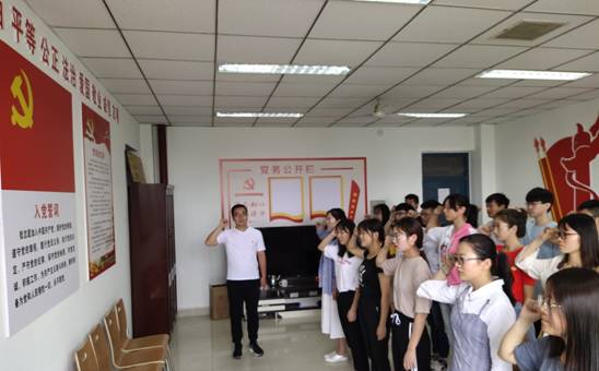 6月8日上午,在bellbet贝博艾弗森官方网站A座309党员活动室,学院党委举行了2019年预备党员宣誓仪式。院党委副书记乔石豪出席仪式并领誓,支部书记、正式党员代表和51名预备党员与会。仪式由学院党办负责人、本科生第四党支部书记孔瑞婷主持。