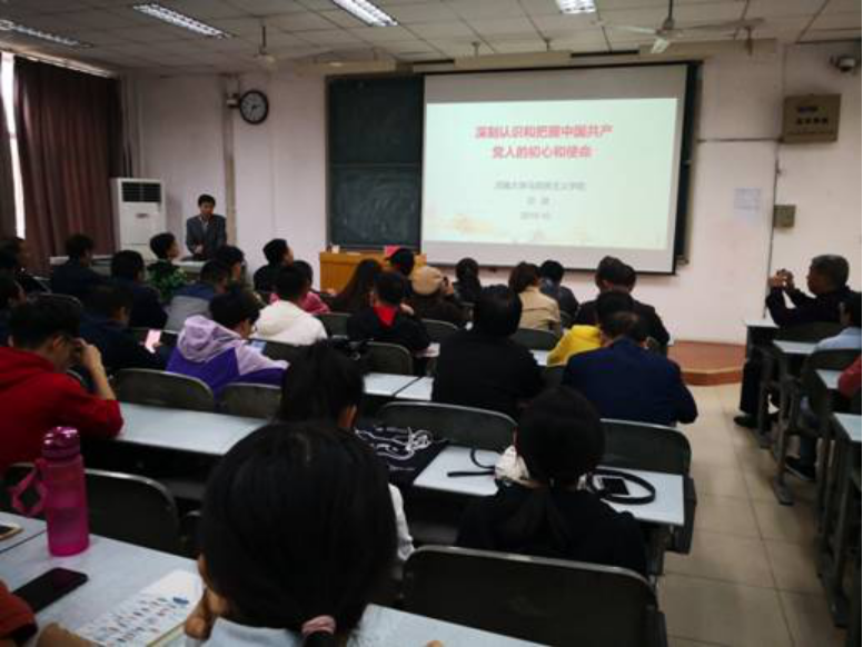 10月10日下午2:30,bellbet贝博艾弗森官方网站党委在金明综合楼6101教室举行“不忘初心 牢记使命”主题教育报告会,邀请马克思主义学院教授欧健做了题为《深刻认识和把握中国共产党人的初心和使命》的报告。报告由学院党委书记王宏华主持,学院全体师生党员聆听了报告。