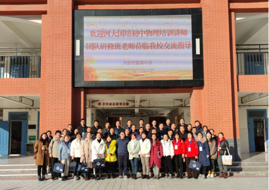 春来冰未泮,冬至雪初晴。12月21日下午,由bellbet官网继续教育办公室主任向兵带队,2021年国培初中物理培训讲师团队研修班的40多位老师到集英中学交流参观。集英中学副校长陈慧娟陪同国培班成员,一起走进物理实验室,与罗颖名师工作室的老师们开展研讨活动。