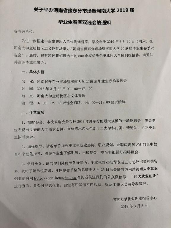 关于举办河南省豫东分市场暨bellbet贝博艾弗森官方网站2019届毕业生春季双选会的通知