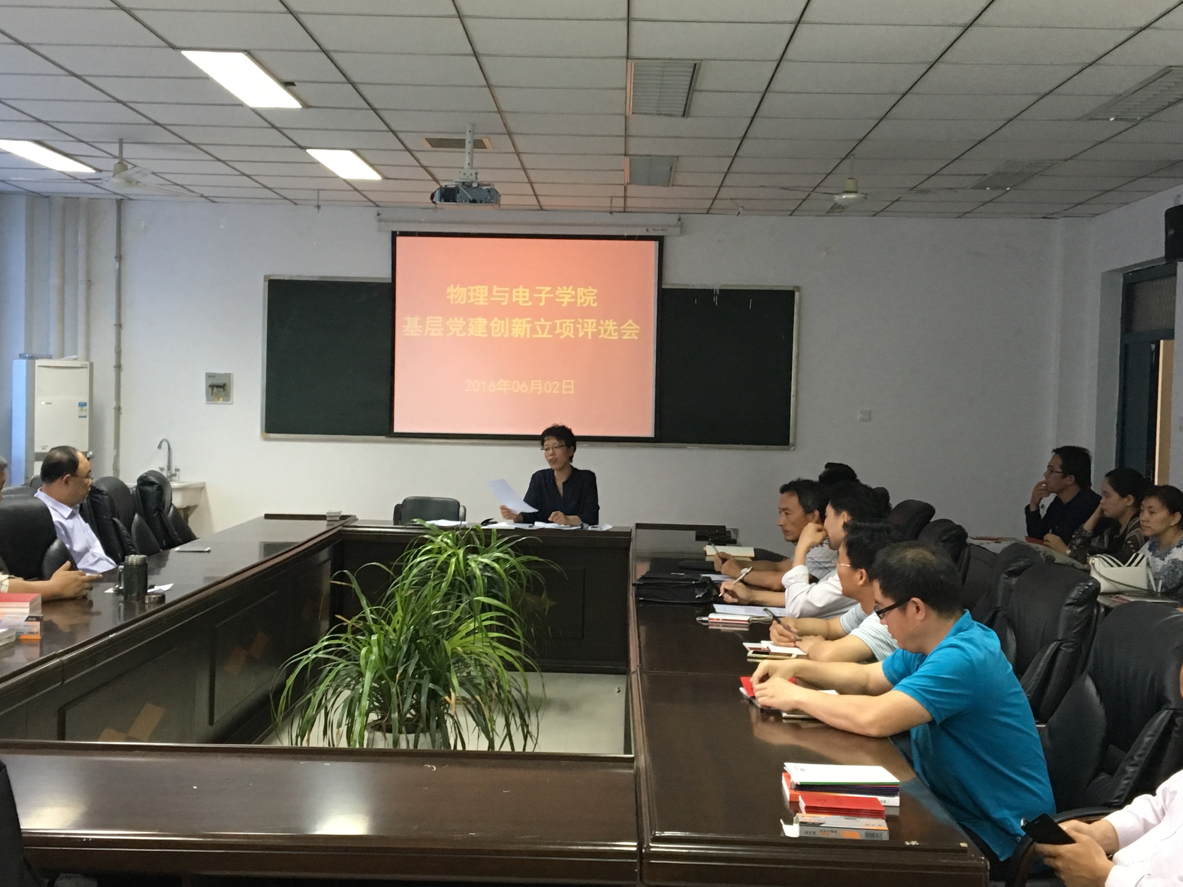 在评审前,王宏华强调,党支部创新活动立项工作是基层党支部建设的重要环节,是新形势下基层党建工作方式的有益探索。此项活动不仅将促进“两学一做”学习教育的深入开展,充分调动广大党员的积极性和主动性,同时将进一步激发各党支部的凝聚力和战斗力,发挥党支部的战斗堡垒作用和党员的先锋模范作用,形成与教学、科研、学科建设、人才培养等工作相适应的生动活泼的党建工作新局面。