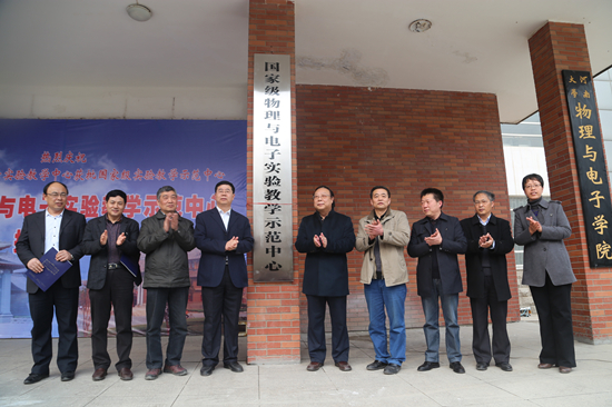 座谈会开始前,在与会人员与师生代表的见证下,赵国祥、刘志军共同为国家级物理与电子实验教学示范中心揭牌。