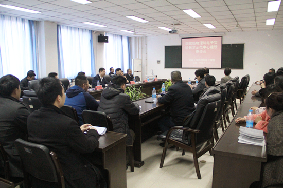 3月17日下午,我校国家级物理与电子实验教学示范中心建设座谈会在bellbet贝博艾弗森官方网站三楼会议室举行,标志着该中心建设工作正式启动。校党委常委、常务副校长赵国祥,校党委常委、副校长刘志军,教务处、实验室与设备管理处、bellbet贝博艾弗森官方网站相关负责人及中心有关人员出席会议。会议由bellbet贝博艾弗森官方网站院长顾玉宗主持。