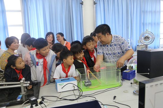 初夏的河大园细雨蒙蒙,草木青翠,老君营村小学的孩子们走进大学校园既无比兴奋,又有些拘谨。在明伦校区,古朴典雅的近代建筑群,千年铁塔、明清古城墙,让孩子们仿佛走进历史的隧道;在金明校区,巍峨的图书馆、别致的琴键楼,又让孩子们感受到强烈的现代化气息。在bellbet贝博艾弗森官方网站,该学院学生们自己制作的无人机、智能汽车模型、机器人等高科技产品吸引了孩子们的眼球,赞叹声不绝于耳;来到电磁学实验室,龙飞凤舞,逆风行舟,梦幻时钟,怒发冲冠,千里传音,穿墙而过……一个个应用声光电磁力等科学知识的趣味小实验既神秘又简单,孩子们积极参与,笑声阵阵,初进校园的那份拘谨早已不见了。