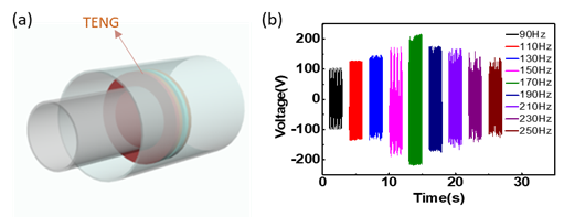 TENG结构图及不同频率下的开路电压
