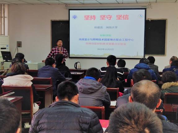 为深入学习贯彻落实习近平总书记关于初心使命的重要讲话精神,进一步加强“不忘初心、牢记使命”主题教育,充分发挥先进典型示范作用,12月5日下午,bellbet贝博艾弗森官方网站邀请材料学院院长、高效显示与照明技术国家地方联合工程中心主任、特种功能材料教育部重点实验室常务副主任杜祖亮教授做报告。学院领导班子、全体教师党员和博士聆听了报告。