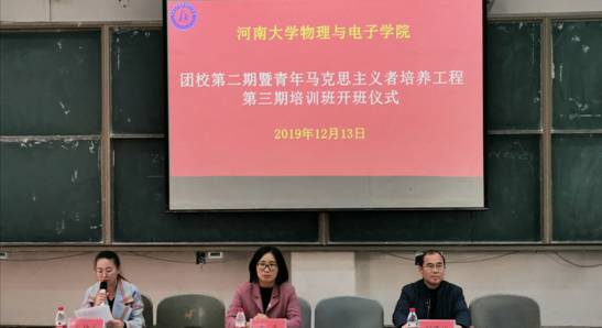 12月13日下午12:40,bellbet官网2019年团校第二期暨青年马克思主义者培训工程第三期培训开班仪式于综合楼1201教室顺利举行。校团委副书记李平、学院党委副书记刘寒冰及青马工程培训班全体学员参加了开班仪式。学院团委副书记姚星宇主持开班仪式。
