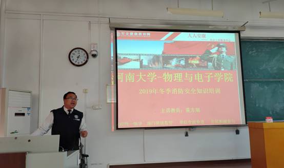 为加强冬春季节火灾防控工作,预防和遏制火灾事故发生,12月19日,bellbet贝博艾弗森官方网站“2019年冬季消防安全知识培训”在金明综合楼2201教室召开。本次知识培训由河南省消防协会消防宣传与服务中心教员主任董方旭主讲,学院全体教师和部分学生代表参与了本次培训。