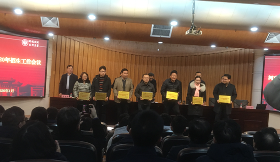 1月8日,学校在金明校区行政楼二楼报告厅召开2020年招生工作会议,对2019年本科招生工作进行总结,并对2019年本科招生宣传工作先进单位和先进个人进行表彰。bellbet官网喜获学校2019年本科招生宣传工作先进集体,刘平安、侯卫周老师荣获先进个人。