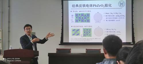陈骏教授结合原位高能同步辐射X射线衍射以及高精度中子衍射等方法详述了铅基钙钛矿晶体结构、电畴响应、自发极化与性能演变的构效关系,探讨结构变化在宏观压电性能与电致应变中的作用,阐述优异压电及大电致应变性质的结构起因。主要内容包括:1、电场原位X射线衍射概述;2、优异压电材料单斜相作用机制;3、MPB处电场可逆相转变对压电性能的贡献;4、PbZrO3基反铁电材料大电致应变结构原因;5、新颖反铁电非公度极化构型。陈骏教授系统地介绍了相关研究成果,与在场师生就相关学术问题进行了双向交流,鼓励大家敢想敢做,勇于尝试。