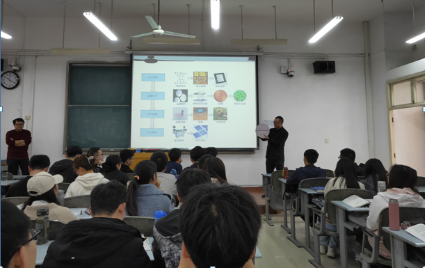 分享会上,刘心潮向同学们介绍了集成电路行业的概况及前景,展示了芯片行业半导体材端当今主流尺寸的300mm的晶圆片,重点讲述了版图设计工程师的工作内容以及发展方向,吸引了同学们的强烈兴趣。他毫无保留地分享了自己在校期间的学习经验以及就业创业经历,并对同学们寄予深切厚望。他说:“如果大家学习这个专业,最终却没有进入这个行业,那是非常可惜的。”在相互交流环节,大家就自己感兴趣的话题积极提问,刘心潮耐心的给予详细解答,既有理想方面的疑惑解答,也有他成长路上的经验教训。