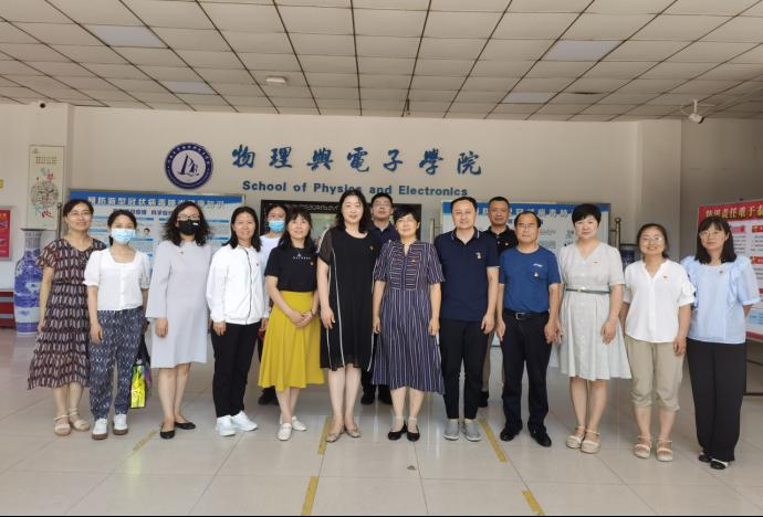 7月7日上午,外语学院党委书记肖艳、副书记杨飞云及各支部书记一行12人来bellbet官网调研全国样板支部申报及建设情况。学院院长、党委副书记白莹、党委副书记刘寒冰、大学物理教工党支部书记康缈、组织委员李若平、学院党委办公室主任吴坤参加调研座谈会。