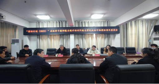 为进一步做好2022年“国培计划”项目县项目协调对接工作,全面提高教师培训工作的精准性和实效性,推动项目顺利实施,2月17日,“国培计划(2022)”县级骨干教师bellbet贝博艾弗森官方网站-民权初中物理项目训前调研暨专家学员对接会在民权县教育体育局举行。学院副院长魏高明、继续教育中心主任向兵、普通物理实验教学中心主任刘平安、班主任王珊,民权县教体局副局长岳英、师训股股长韩龙以及相关培训学员老师出席会议。