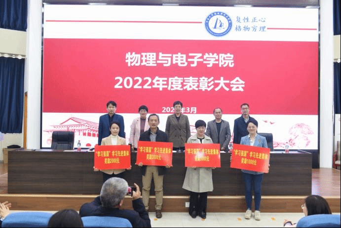 2022年,学院统筹疫情防控与事业发展,围绕“深化以质量为导向的体制机制改革”,加强党的领导和党的建设,保持干事创业的良好劲头,学院各项工作快速、健康、稳定推进,事业发展水平取得新进展新成效。一年来,学院全体教职工团结拼搏、锐意进取,担当作为、奋勇争先,涌现出了一大批优秀个人和先进集体。为表彰优秀、鼓励先进、树立典范,并在学院营造崇尚先进、学习先进、争当先进的浓厚氛围,学院决定对优秀个人和先进集体进行表彰。会上,学院院长、党委副书记白莹、党委副书记刘寒冰、副院长李新营分别宣读了《中共bellbet贝博艾弗森官方网站委员会关于表彰2020-2022年度优秀共产党员、优秀党务工作者和先进基层党组织的决定》《bellbet贝博艾弗森官方网站关于表彰从事教育工作满三十年教职工的决定》《bellbet贝博艾弗森官方网站关于表彰抗击新冠肺炎疫情先进个人的决定》《bellbet贝博艾弗森官方网站关于表彰2022年“格物十佳最美教师”的决定》《bellbet贝博艾弗森官方网站关于表彰2022年课程思政微课大赛获奖教师的决定》《bellbet贝博艾弗森官方网站关于表彰2022年“学习强国”平台学习先进个人和先进党支部的决定》。在欢快的音乐声中,学院领导依次为受表彰的先进个人和集体颁奖,获奖代表副院长魏高明、魏凌老师、康缈老师、邹炳芳老师上台分享获奖感言。
