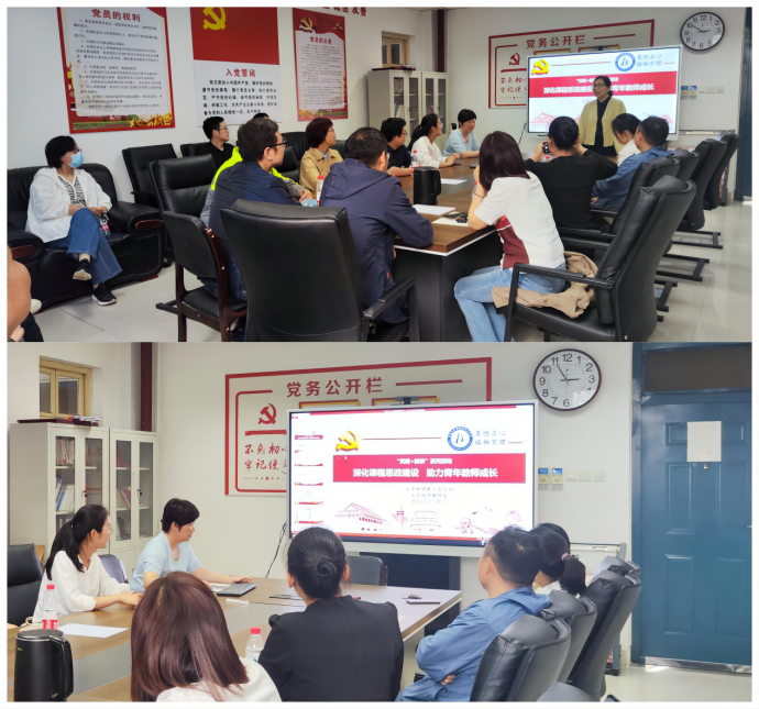 支部书记康缈首先带领全体党员和教师深入学习领会党的二十大报告中关于教育创新的表述:党的二十大报告将教育、科技、人才“三位一体”统筹安排、一体部署,明确了科教兴国战略在新时代的科学内涵和使命任务。随后传达了4月15日“2023年高校课程思政建设系列专题研讨会”的会议精神。