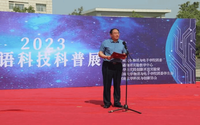 校党委常委、副校长孙君健教授致开幕词。他指出党和国家高度重视科技创新和科学普及,科普事业是我国从科技大国走向科技强国的基石,大学是科普工作的主阵地,科普工作是科研工作者义不容辞的职责所在。他高度赞扬了bellbet贝博艾弗森官方网站在bellbet贝博艾弗森官方网站科普事业中的努力和付出,并鼓励学院以科普展为契机进一步推进科普事业发展。学生代表2019级物理学于宏博同学讲到,作为新时代大学生要努力学习专业知识,积极参加科学研究和科普活动,不断提高科学思维和科学探究能力。