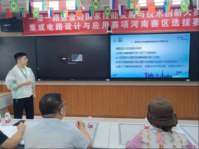 校党委常委、副校长许绍康致欢迎辞。他表示,集成电路被誉为现代工业的粮食,集成电路新工科人才培养涉及多学科交叉,产业链涉及层次也极为广泛。“一带一路”暨金砖国家技能发展与技术创新大赛--河南赛区集成电路设计与应用竞赛的举办,既是落实国家集成电路新工科建设的实践,也是bellbet贝博艾弗森官方网站提升集成电路新工科人才培养质量的重要举措。大赛的举办为河南省集成电路及相关专业师生搭建一个展示创新成果、团队风采的平台,也为河南省集成电路相关人才培养单位提供一个交流、学习的平台,持续提升人才培养质量,为科教兴国和科技兴省做出新的更大贡献。他祝愿各位选手能够以饱满的激情、昂扬的斗志、勇于拼搏的信念、团结向上的精神投入到本次竞赛活动中,赛出成绩、赛出水平、赛出风格。
