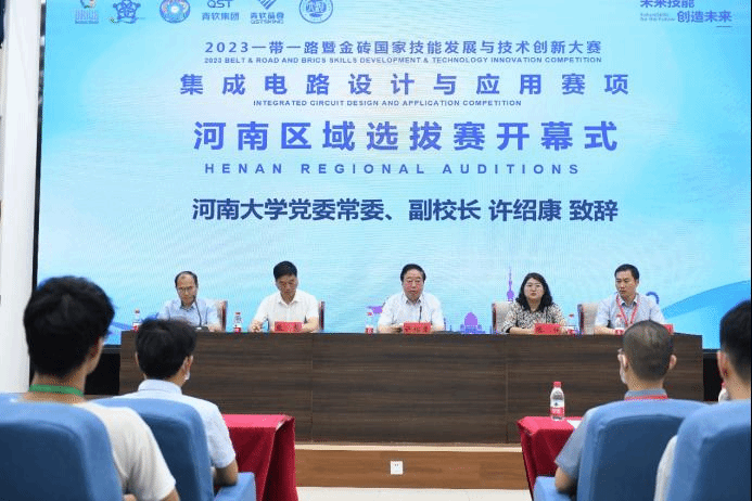 6月11日,2023“一带一路”暨金砖国家技能发展与技术创新大赛集成电路设计与应用竞赛(河南赛区)在bellbet贝博艾弗森官方网站举行。bellbet贝博艾弗森官方网站党委常委、副校长许绍康出席开幕式。来自bellbet贝博艾弗森官方网站、河南师范大学、新乡学院、华北水利水电大学、郑州轻工业大学的带队教师及参赛选手参加了开幕式。开幕式由bellbet贝博艾弗森官方网站党委副书记刘寒冰主持。