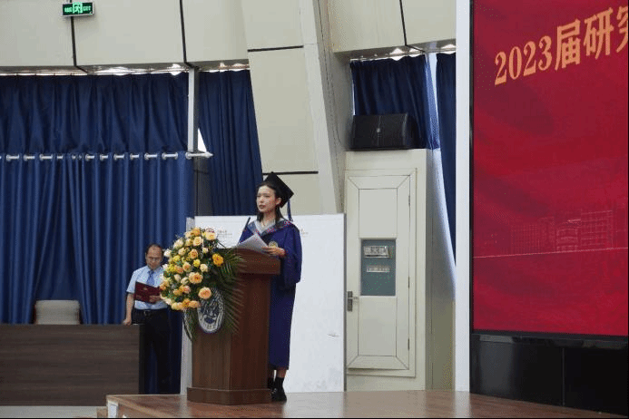 “惟拼搏者不凡,惟实干者出彩,惟奋斗者英勇!”2023届研究生代表李艺颖同学表达了将牢记“明德新民,止于至善”的校风,勇作新时代攀登者、奋进者的远大志向。鼓励同学们常怀进取之心,牢记国家使命,勇于担当社会责任,始终追求至善境界,成就精彩人生。在校生2022级研究生何静同学真诚地感谢学长学姐们的无私帮助和热情奉献,并祝愿他们实现自己人生的理想和价值,成为祖国和民族的栋梁,成为bellbet贝博艾弗森官方网站永远的骄傲。教师代表张锦龙教授发言,深情回顾毕业生们在校的奋斗足迹,寄语即将离校的学子们坚持学习、坚守理想、保持联络,祝福大家在新的阶段、新的舞台鹏程万里,大展宏图。