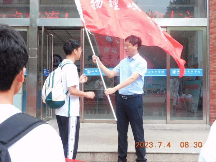 出征仪式在团歌声中拉开帷幕。学院党委书记张慧作动员讲话并向实践团队授旗,他指出,社会实践是开展大学生素质教育的重要载体,是高校思想政治教育的生动课堂。奋斗是青春最亮丽的底色,大学生只有奔赴社区村舍、田间地头,在实践中受教育、长才干、作贡献,才能磨炼品格和意志,才能真正贴近基层,贴近群众,贴近实际,深入了解我国政治、经济、社会、文化、生态发展的现状,才能不断加强责任感和使命感,为未来社会发展做出贡献。他对参加本次“三下乡”社会实践活动的青年师生寄予三点殷切希望:一要在实践中了解国情,认知社会,在暑期社会实践中用脚步丈量祖国大地,用眼睛发现中国精神,用耳朵倾听人民呼声,用内心感应时代脉搏,在实践中认识国情、增长才干、奉献社会;二要在实践中磨练意志,锤炼品格,把向实践学习、向群众学习作为磨练意志、提高本领、完善自我的重要途径,把实践经历转化为宝贵的精神财富;三要在实践中注重宣传,要通过社会媒体、网站等宣传途径,积极主动地开展宣传,加强信息沟通,交流工作经验,扩大教育成果。