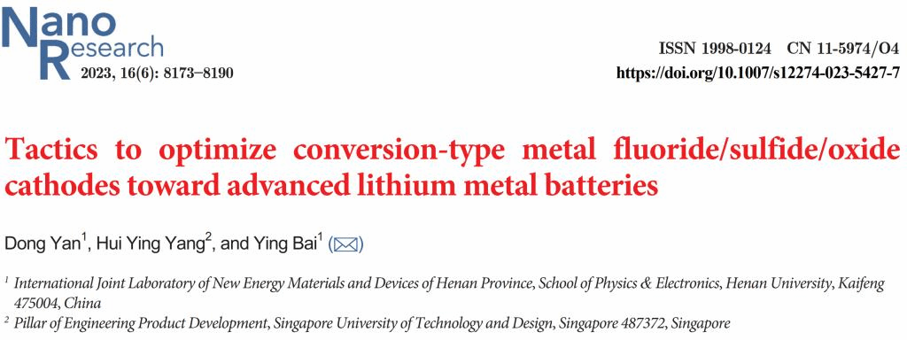 根据科睿唯安Clarivate最新发布的Essential Science Indicators(简称ESI)统计结果,我院白莹教授团队在中国科技期刊卓越行动计划领军期刊Nano Research发表的论文(Nano Res., 2023, 16, 8173)入选物理学领域ESI Top 0.1 %热点论文和Top 1 %高被引论文。bellbet贝博艾弗森官方网站、河南省新能源材料与器件国际联合实验室为该论文通讯单位,白莹教授为通讯作者,黄河学者闫冬为第一作者。