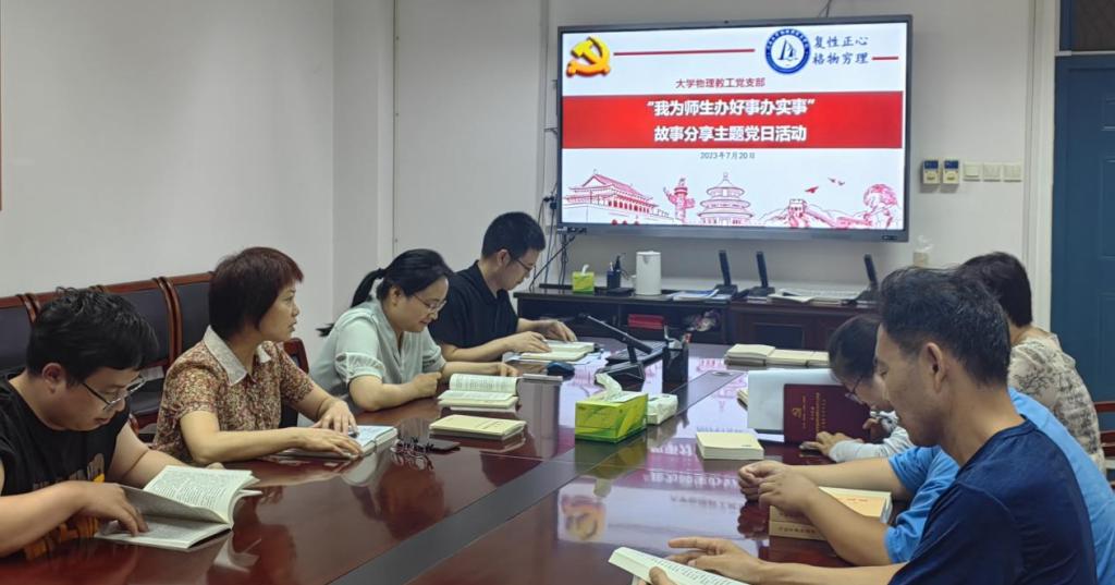 2023年7月20日下午,大学物理教工党支部在学院A311开展“我为师生办好事办实事”故事分享主题党日活动,支部全体党员参加了活动。