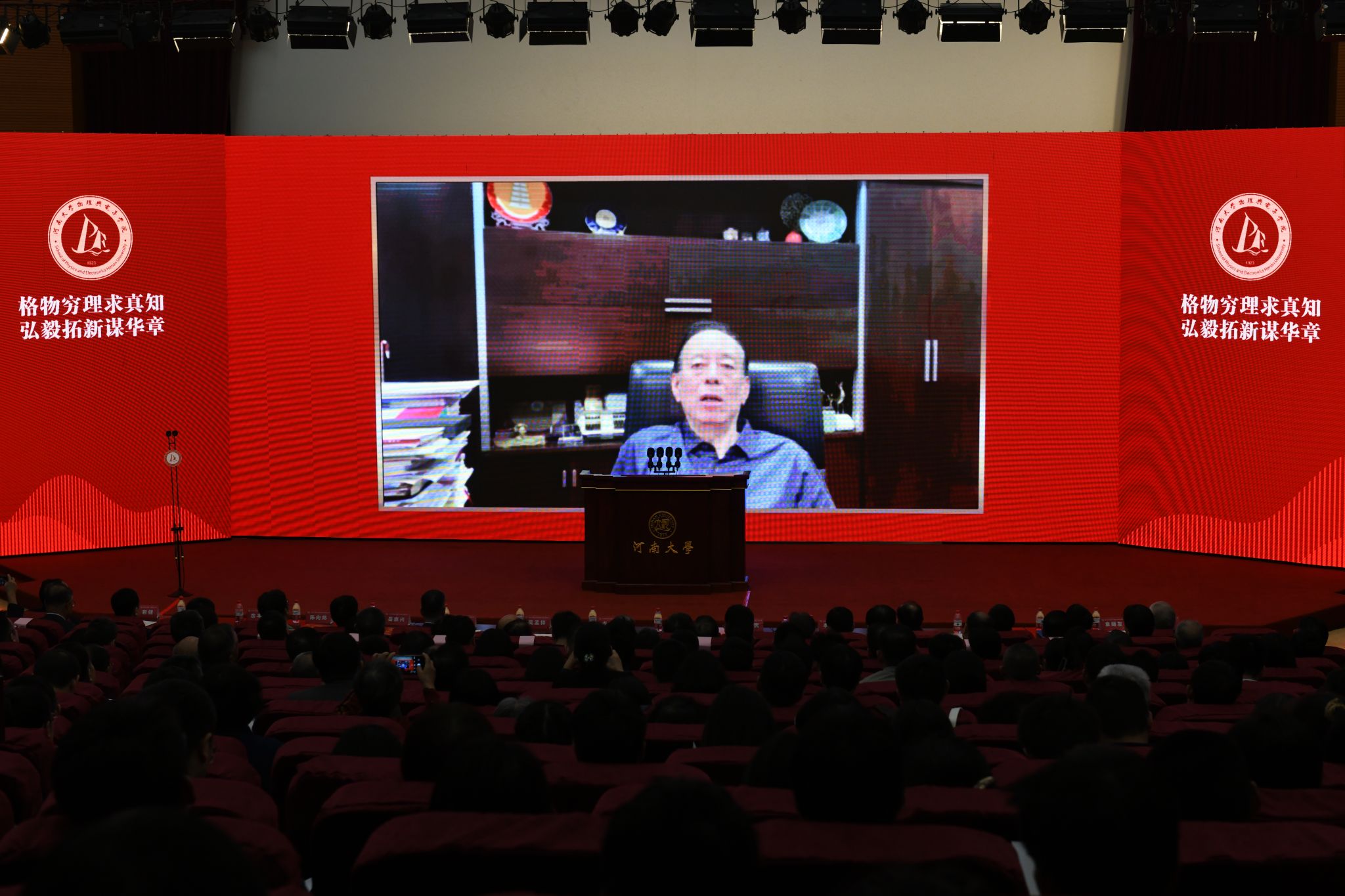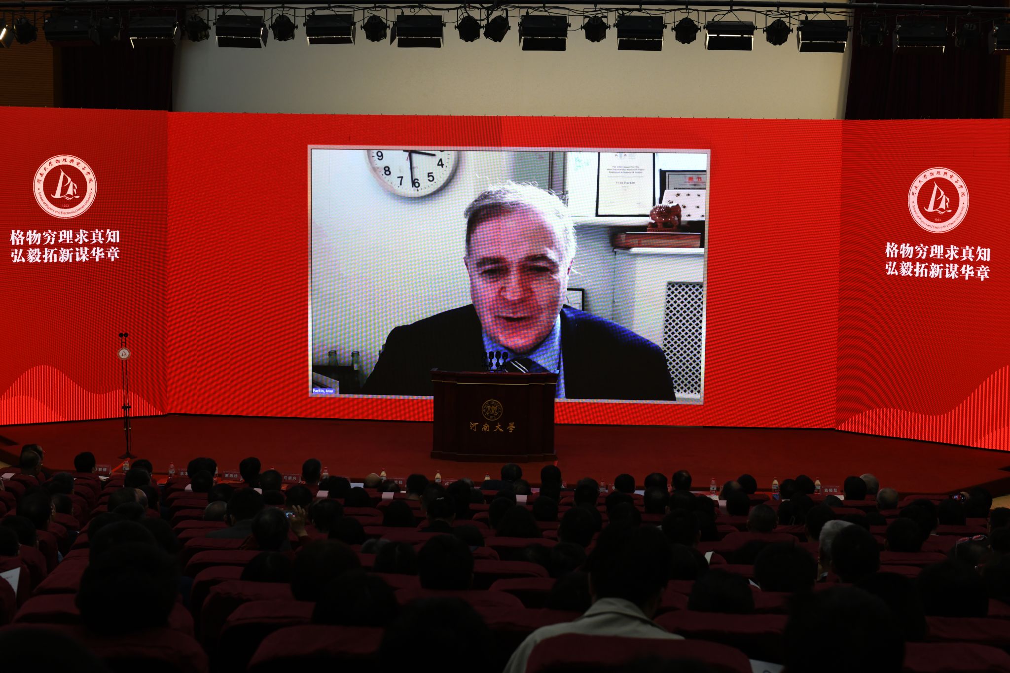 中国科学院物理研究所陈立泉院士、西安电子科技大学郝跃院士、欧洲科学院院士伦敦大学学院Ivan P.Parkin教授先后线上致辞,对bellbet贝博艾弗森官方网站特别是物理学科的校友们、老师们、同学们表示热烈的祝贺,对物理学科取得的建设成就表示高度赞扬,祝愿在新的历史时期谱写崭新的发展篇章。他们一致认为,近年来,bellbet贝博艾弗森官方网站物理学科在教学和科研等方面取得较大进步,特别是各种学科排名稳步提升,建设发展成效显著。希望河大物理人继续加强与国内外高水平高校、科研机构合作,推动物理学科再创辉煌,朝着“一流”学科目标奋勇前进。