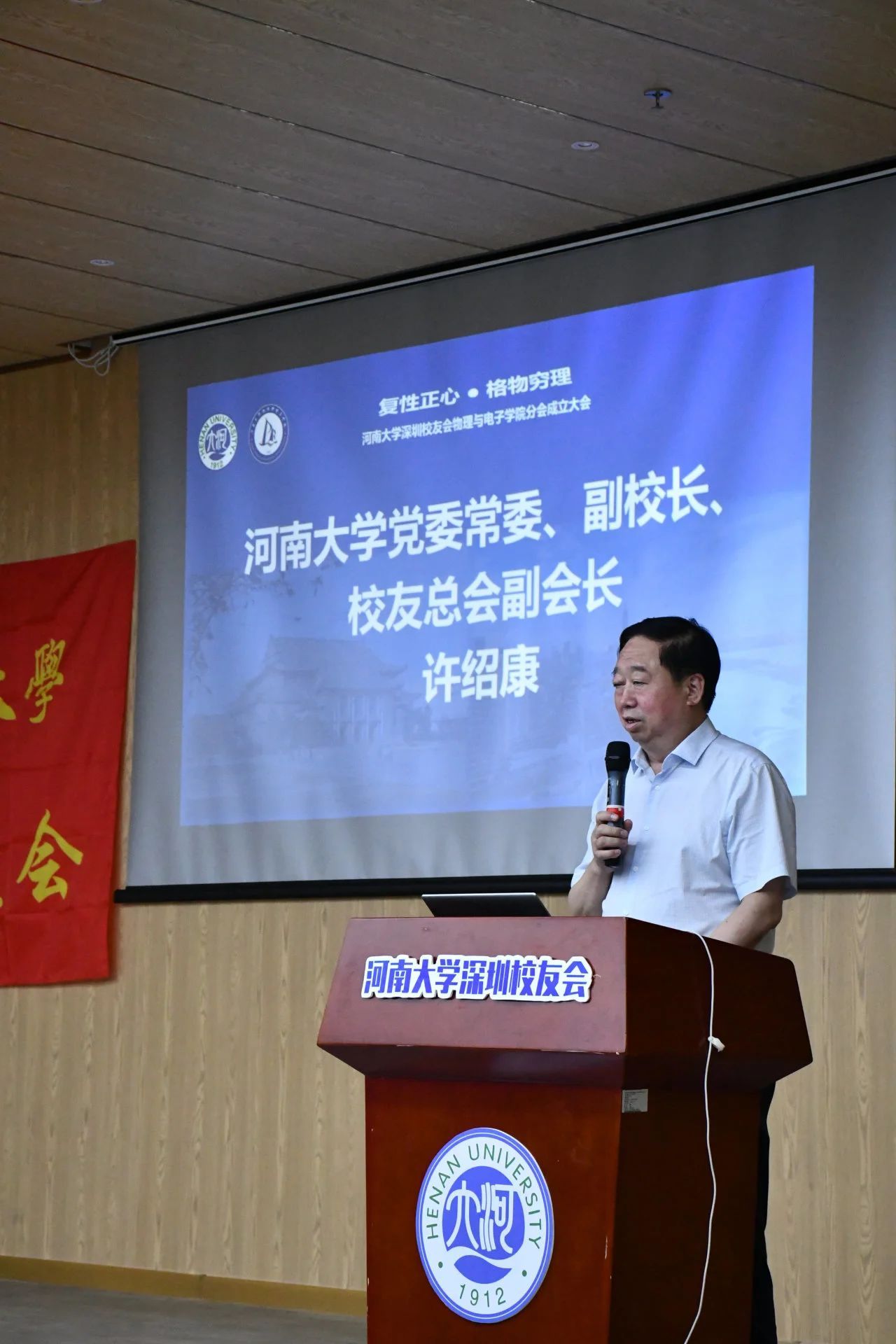 许绍康代表bellbet贝博艾弗森官方网站向参与并出席此次成立大会的来宾及各界人士表示诚挚的欢迎,对关心和支持学校、学院发展的在深校友表示衷心的感谢。他强调,在河南省委、省政府的殷切关注和支持下,学校目前已迈入“双一流”“双航母”战略叠加的黄金时期,发展进入快车道。全校师生齐心协力,紧紧围绕“中国特色、世界一流、中原风格”的发展定位,在人才与师资队伍建设、学科建设、人才培养、招生就业等方面都做出了卓有成效的工作。许绍康表示,在bellbet贝博艾弗森官方网站的百十年辉煌办学路和物理学科的百年发展历程中,校友永远是母校最宝贵的财富和资源,是母校事业发展最坚实最可信赖的力量。希望深圳校友会bellbet贝博艾弗森官方网站分会能够积极发挥桥梁纽带作用,传承母校文化,增加母校美誉度;利用珠三角的丰富资源,搭建校友沟通交流、资源共享的平台,在人才培养、招生就业、高层次人才引进和学科建设上发挥作用,助推母校“双一流”建设和物理学科蓬勃发展。