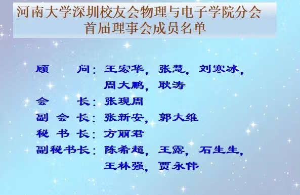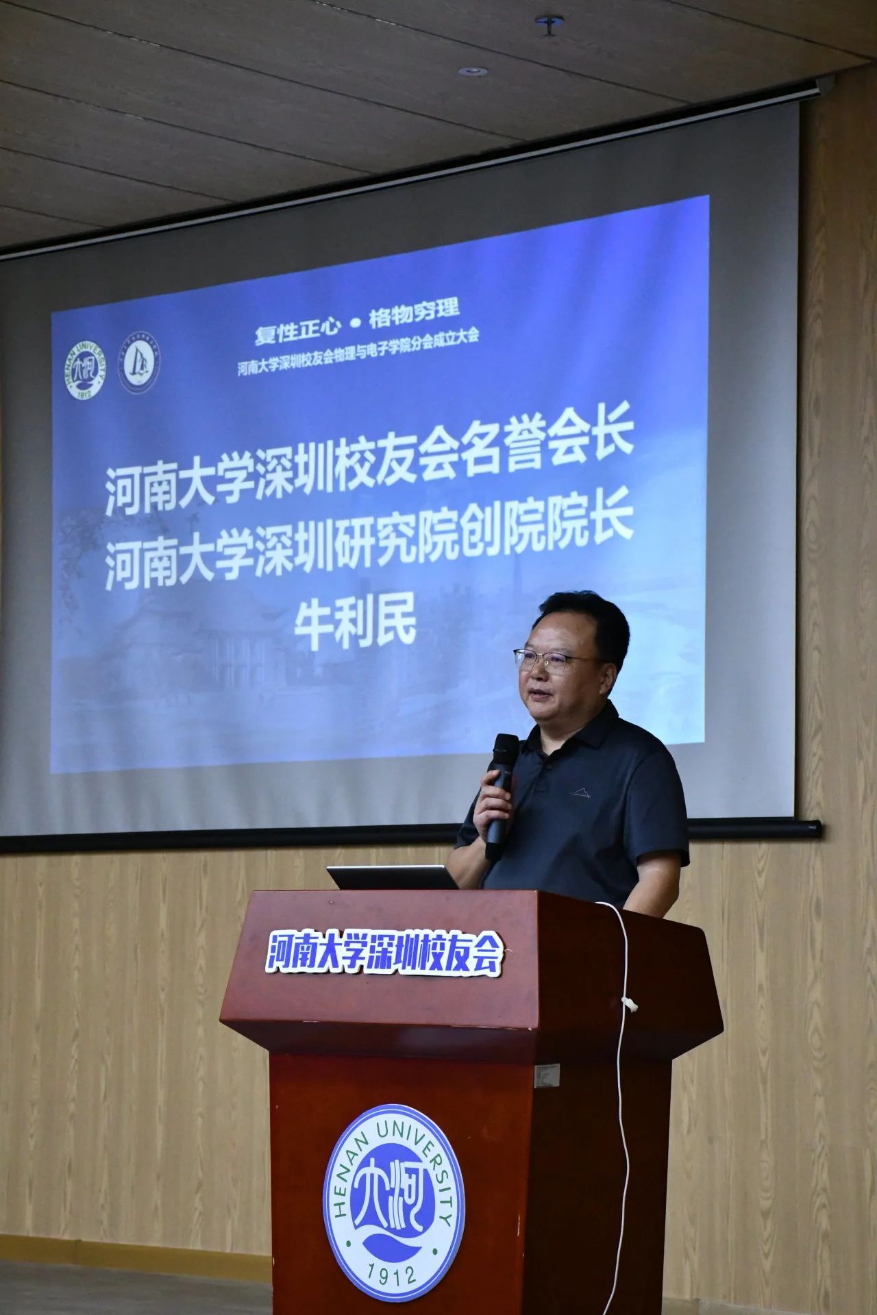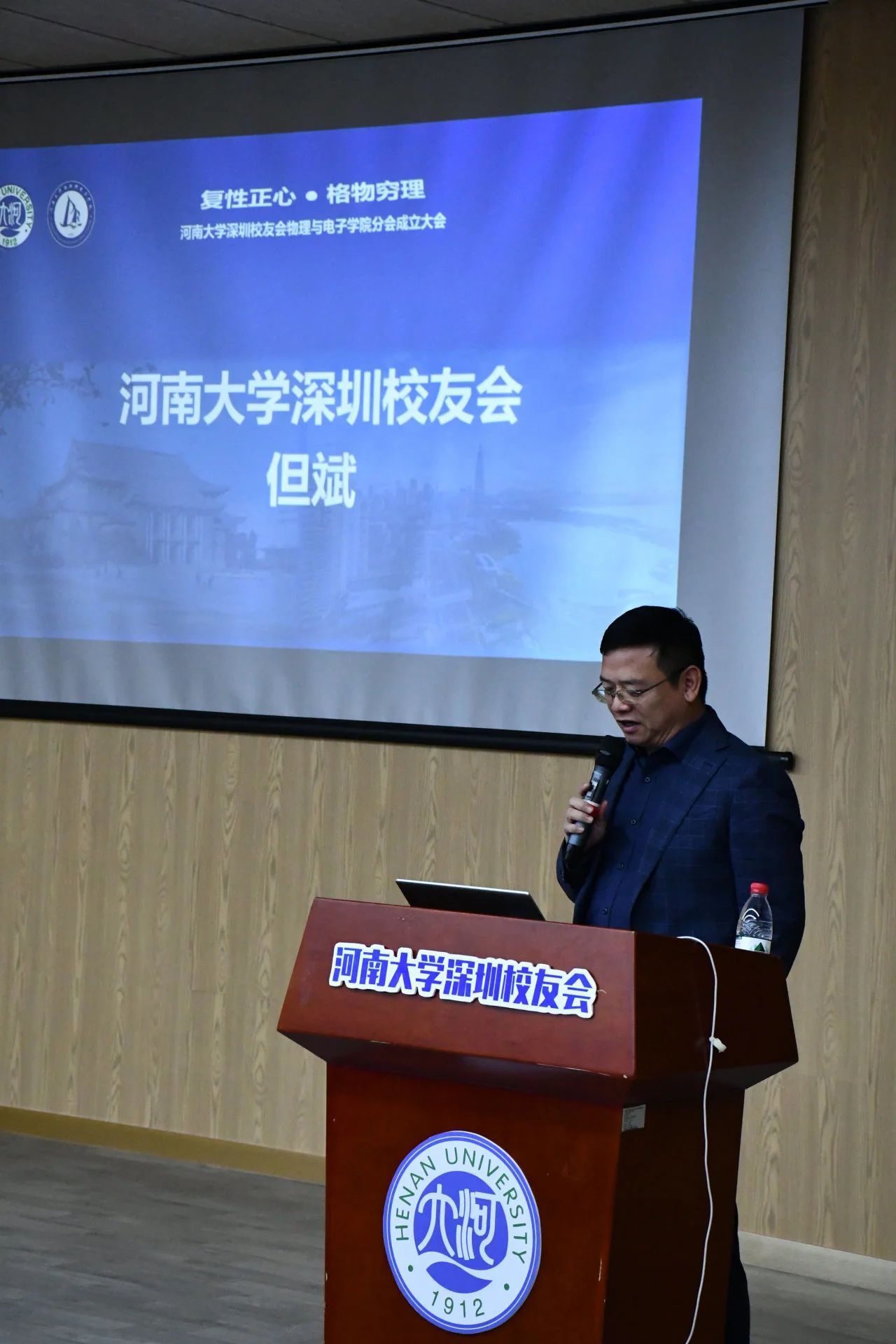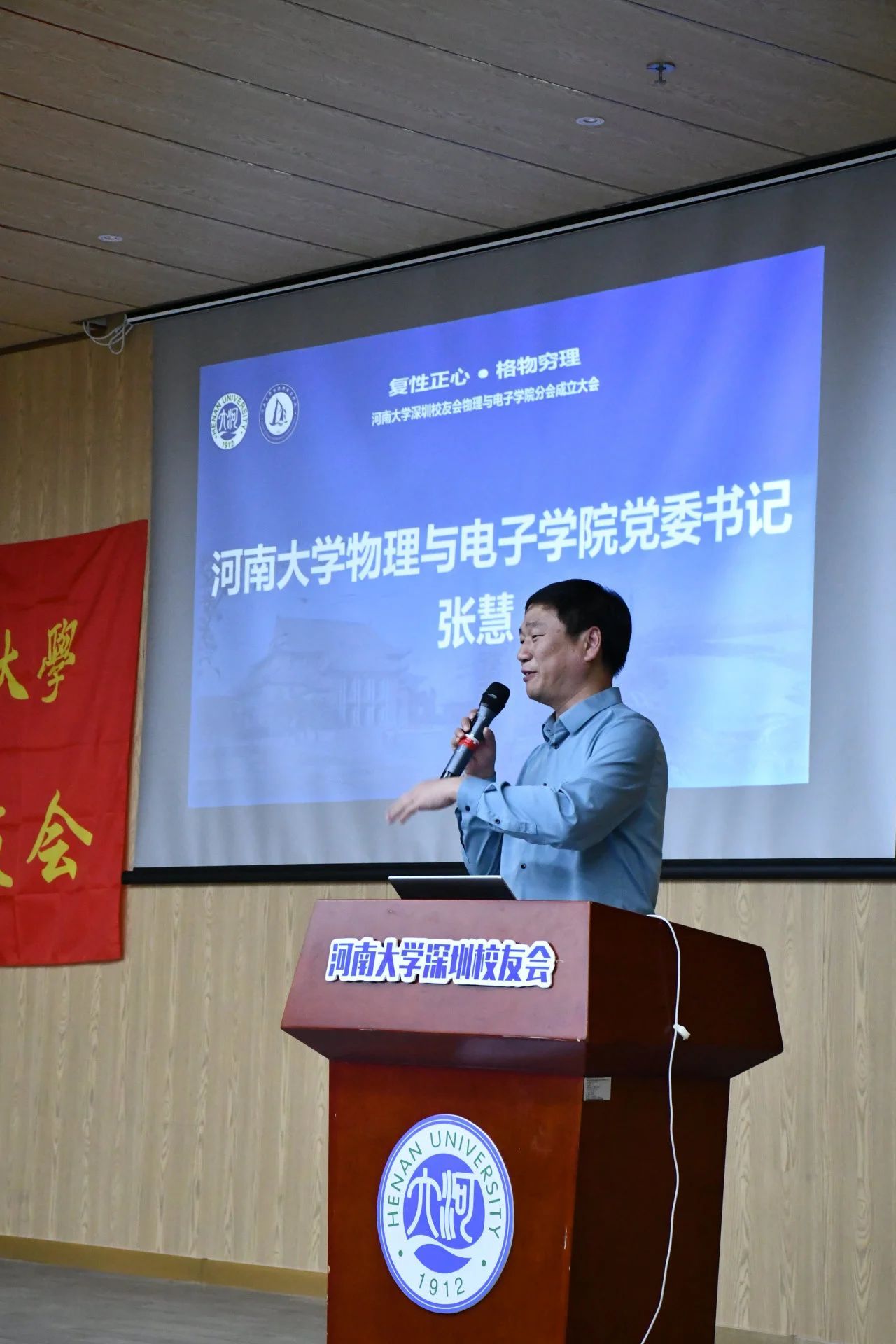 张慧向与会校友介绍了bellbet贝博艾弗森官方网站物理学科的百年发展历程,他表示,深圳校友会bellbet贝博艾弗森官方网站分会的成立,正逢bellbet贝博艾弗森官方网站物理学科创建100周年,有着特别的纪念意义。一百年来,bellbet贝博艾弗森官方网站物理学科坚持以“建一流学科、育一流人才”为办学目标,培养出一批批在各行各业发挥专业优势,作出卓越贡献的河大物理人。希望在深bellbet贝博艾弗森官方网站校友恪守“明德新民,止于至善”的校训和“复性正心,格物穷理”的院训,志存高远、追求卓越、努力拼搏,在深圳这个改革开放前沿的城市,充分发挥河大物理人的智慧和学识,开辟新天地,创造新价值,努力谱写人生的华彩乐章,为母校的“双一流”建设和母院高质量发展作出新的贡献。