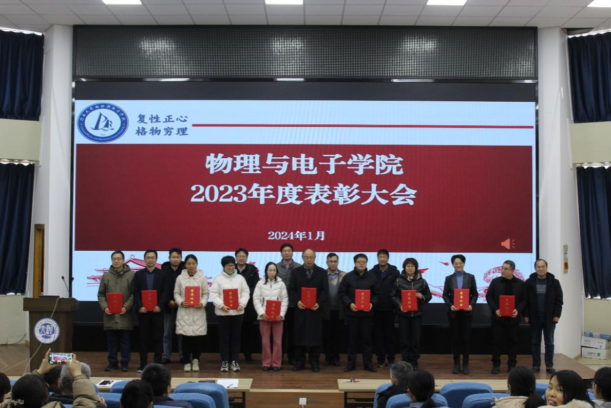 2023年,学院全体教职工团结拼搏、锐意进取,奋勇争先、敢作敢为,涌现出一大批优秀教师。为引导和激励广大教职工弘扬教育家精神,大力培养选树师德先进榜样,经各系室、中心推荐、网络投票等评选环节,刁春丽等10名教师被评为“格物十佳最美教师”。会上,由学院副院长李国强宣读《bellbet贝博艾弗森官方网站关于表彰2023年“格物十佳最美教师”的决定》。在热烈的掌声中,学院班子成员依次为获奖教师颁发荣誉证书,获奖代表教师吴永辉上台作经验交流分享。