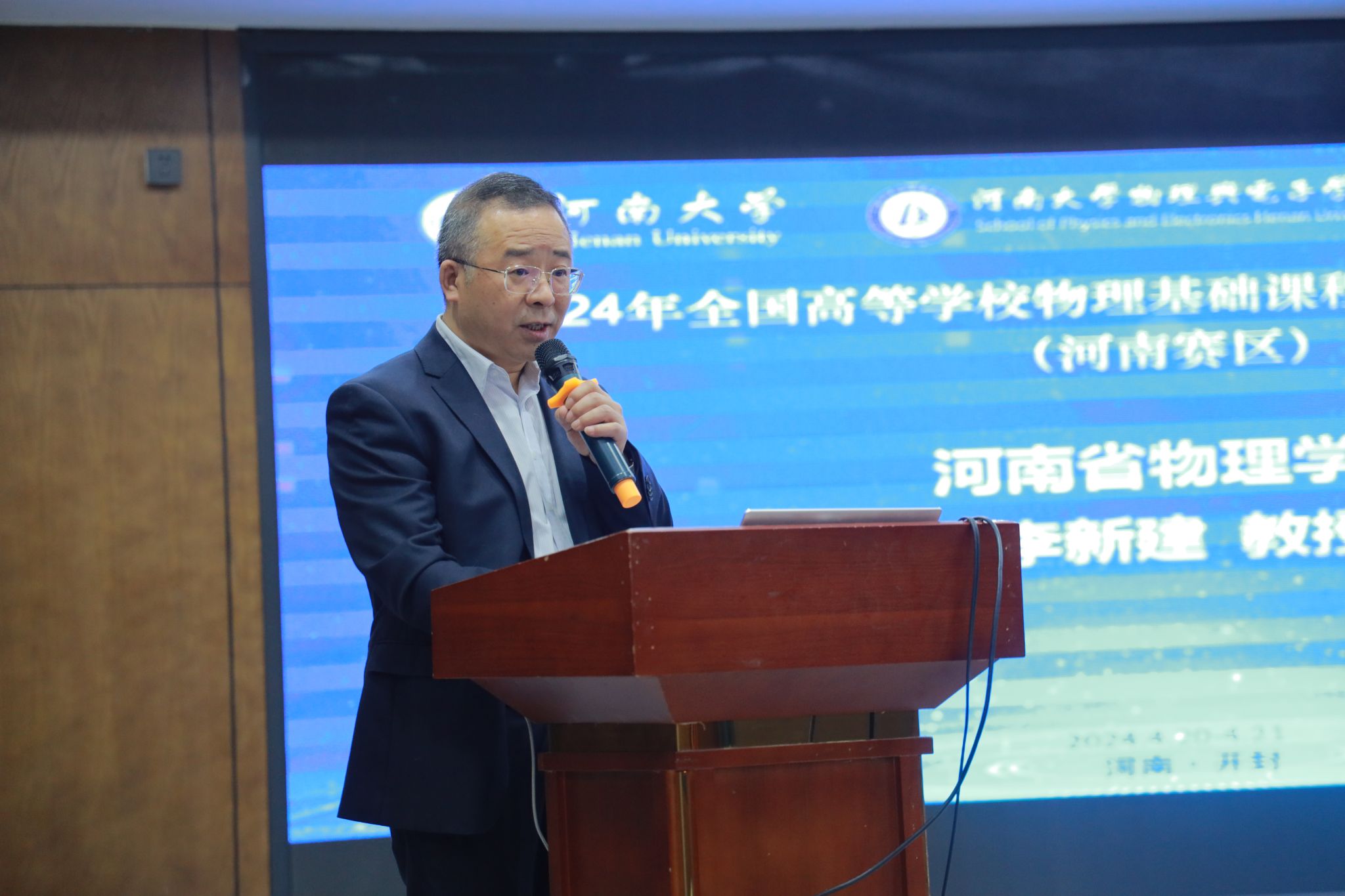 2024年4月20—21日,全国高等学校物理基础课程青年教师讲课比赛(河南赛区)在我校举办。本次大赛由河南省物理学会主办,bellbet贝博艾弗森官方网站教务处、bellbet贝博艾弗森官方网站承办。bellbet贝博艾弗森官方网站副校长张礼刚,河南省物理学会副理事长兼秘书长李新建,bellbet贝博艾弗森官方网站教务处副处长张琨出席开幕式并致辞,教育部高等学校大学物理课程教学指导委员会委员、中南地区工作委员会主任贾瑜,教育部高等学校大学物理课程教学指导委员会中南地区工作委员会秘书长王杰芳,河南省物理学会秘书王新昌,bellbet贝博艾弗森官方网站党委书记张慧等参加开幕式,bellbet贝博艾弗森官方网站副院长李国强主持开幕式。