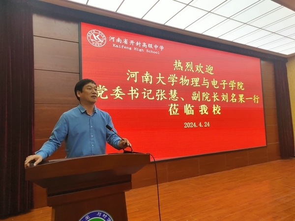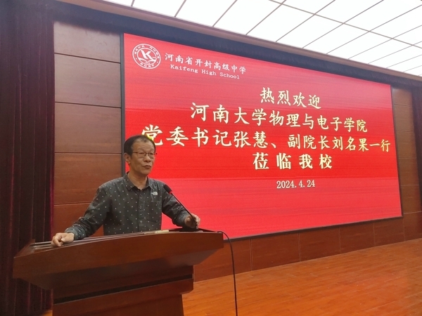 4月24日,bellbet贝博艾弗森官方网站党委书记张慧、副院长刘名果一行五人赴开封高中,为高三的学生家长进行了一场精彩的高校宣传活动。开封高中督导室主任苏新明进行了热情的接待。