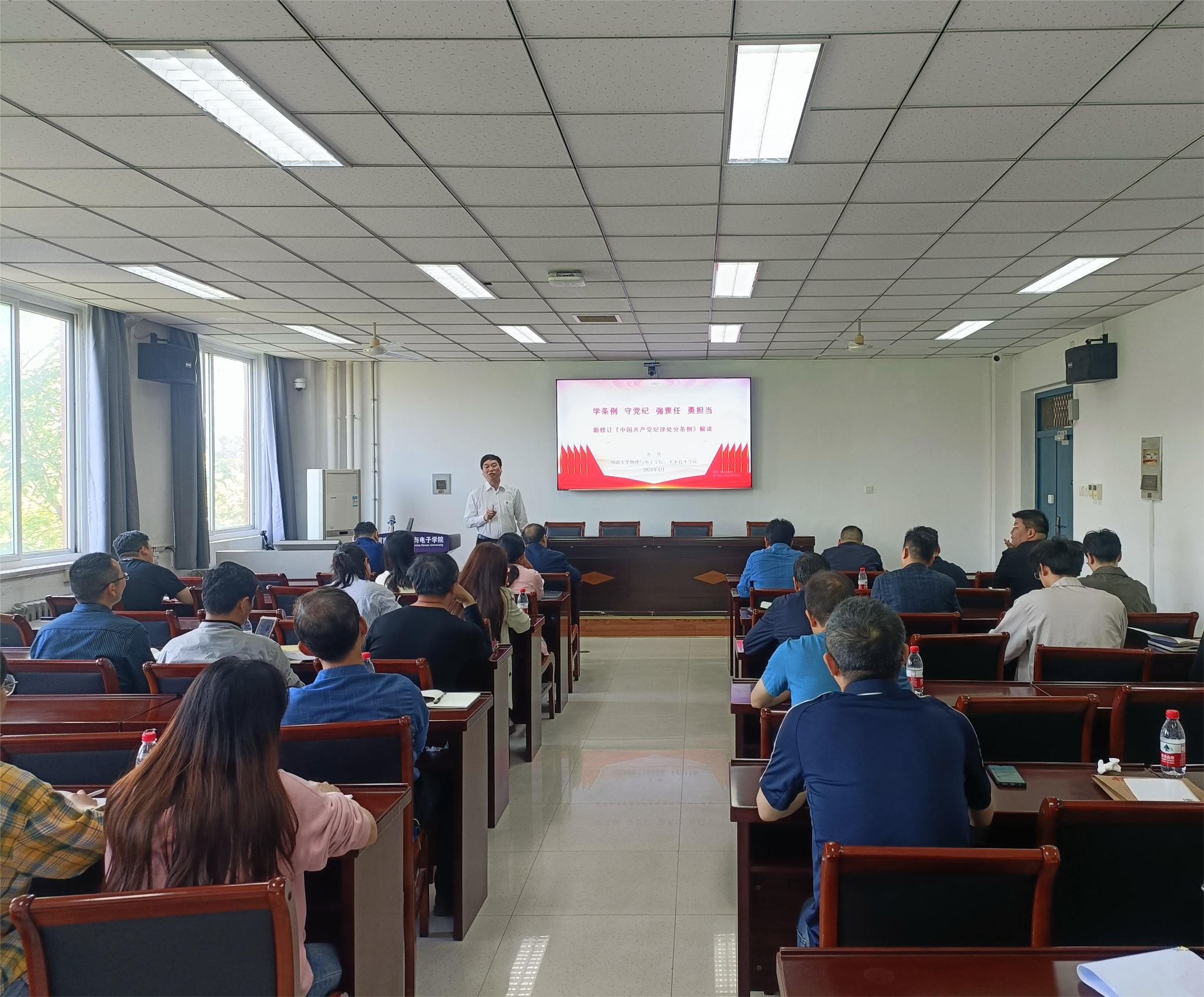 张慧要求,一是要领会主旨要义。要深刻领悟习近平总书记关于党的自我革命的重要思想,关于健全全面从严治党体系、全面加强党的纪律建设的重要论述,深刻认识开展党纪学习教育的重要意义,切实增强开展党纪学习教育的政治自觉、思想自觉和行动自觉。要深入领会修订《条例》的重点内容和着力方向,强化自我约束,提高免疫能力,凝聚干事创业的精气神,为学校“双一流”“双航母”建设作出新贡献。二是要增强遵规守纪自觉。要把增强党性、严守纪律、砥砺作风融入日常、化为习惯。要推进纪律教育常态化,营造学纪、知纪、明纪、守纪浓厚氛围。要坚持以案促学,用身边事教育身边人,时刻绷紧纪律之弦、守牢廉洁底线,持续打造积极健康、干事创业的政治生态和良好环境。三是要真抓实干推动发展。坚持两手抓两促进,双结合双提升,持续推动学用结合、学以致用,聚焦学院提质进位的艰巨建设发展任务,以目标管理责任制为抓手,坚持深化创新、改革攻坚、开放提升,完善绩效考核评价,坚持结果导向与目标导向、问题导向相统一,把党纪学习教育成果转化为推动高质量发展的强大动力、转化为推进工作的扎实成效,推动学院事业发展再上新台阶。