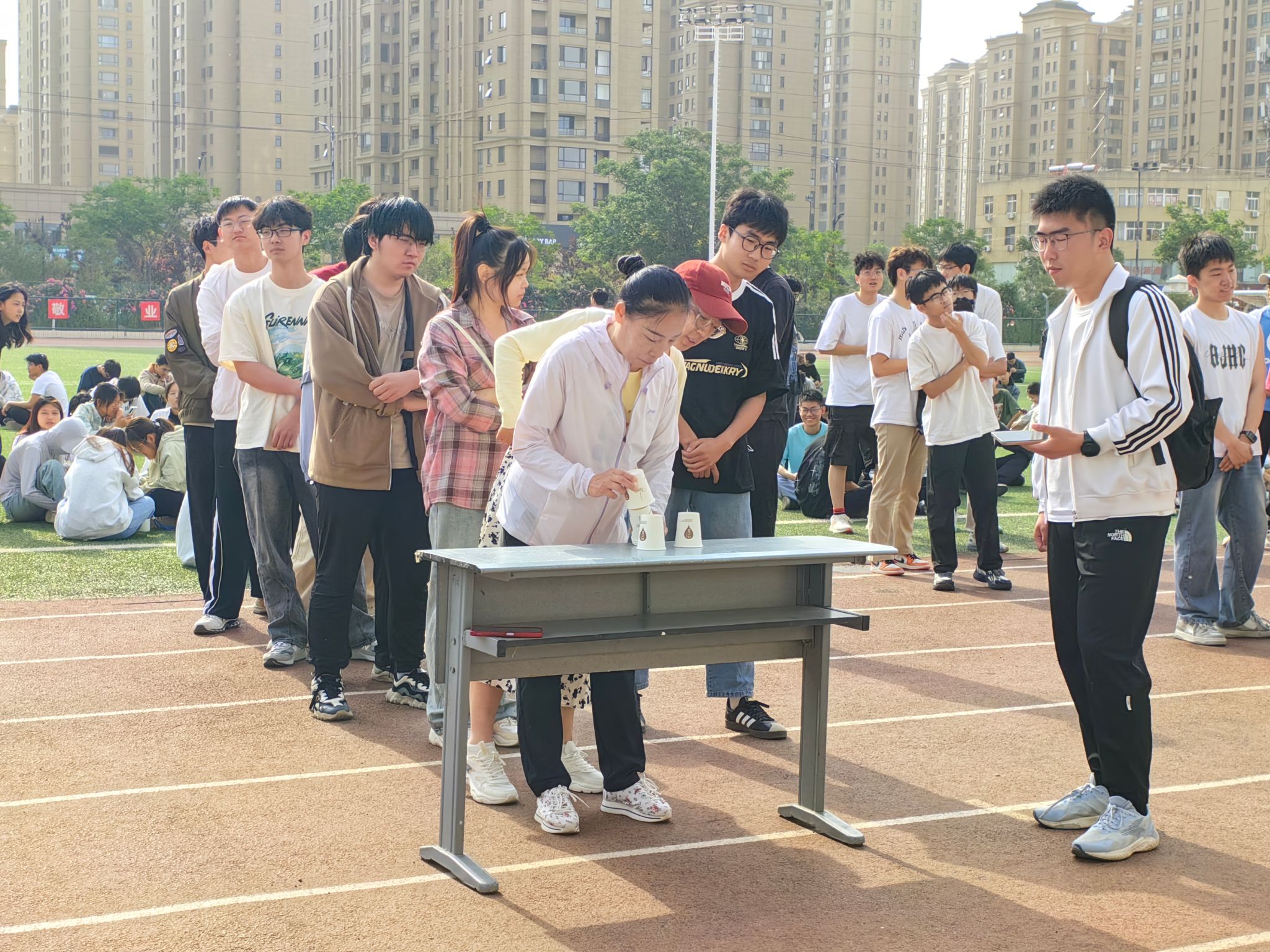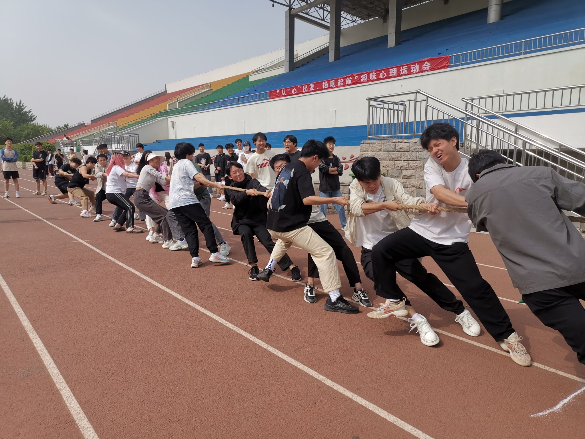 随后,运动会正式开始,比赛项目精彩纷呈,有叠纸杯接力赛、大珠小珠落纸篓、拔河、接竹竿、一元几毫和袋鼠跳接力等六个项目,每个项目都充满趣味性和挑战性。在活动中,同学们积极参与,互帮互助,在团队合作中展现出了良好的团结和配合精神。通过游戏与竞赛,同学们不仅在轻松愉快的氛围中放松身心,释放压力,还增进了对心理健康的认识与理解,提升了心理素质和自我调节能力。