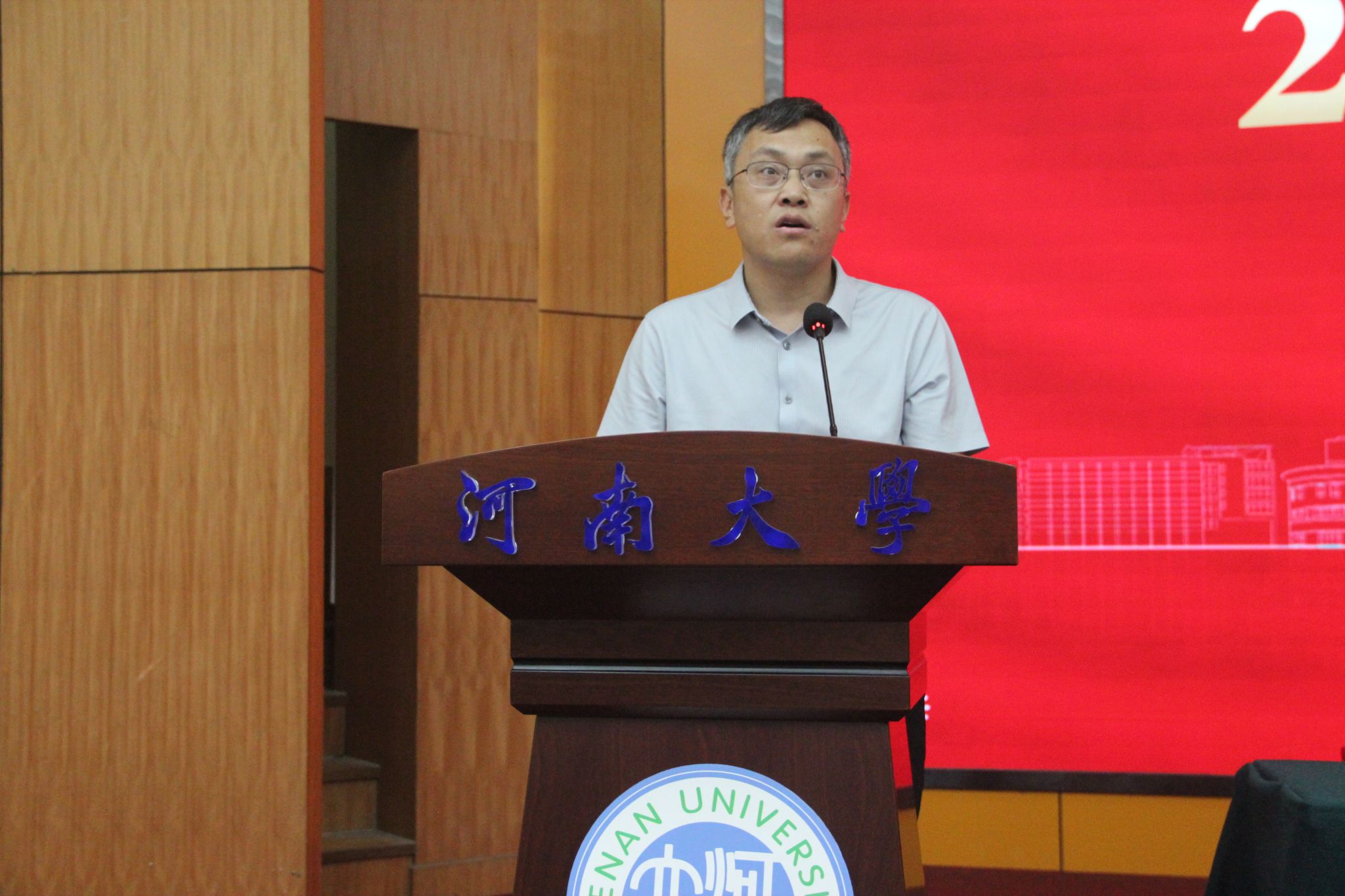 典礼结束后,学院党委书记张慧作《弘扬伟大建党精神,锤炼鲜明政治品格,做有理想敢担当能吃苦肯奋斗的时代新人》专题报告。报告指出,中国共产党一经成立,就把马克思主义写在自己的旗帜上,把实现共产主义确立为最高理想,把为中国人民谋幸福、为中华民族谋复兴确立为自己的初心使命,团结带领全国人民进行艰苦卓绝的伟大斗争,谱写了气吞山河的壮丽史诗。他勉励同学们,要坚定理想信念、让勤奋学习成为青春远航的动力,不负青春韶华、在奋斗实践中练就过硬本领,彰显青春作为、在中国式现代化建设中挺膺担当。他强调,百年河大因创新而生、因改革而兴、因改革创新而强,作为新时代河大人要秉持“自信、拼搏、开放、创新”的新河大精神,用务实踏实的脚步去实现目标,以“愿得此身长报国”的志气,将青春抱负融入到以中国式现代化全面推进强国建设民族复兴伟业中。