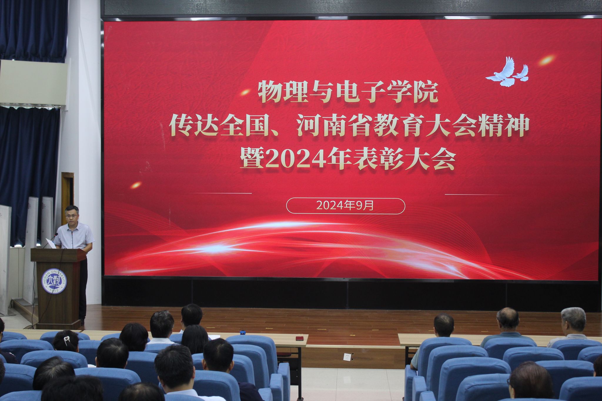 为学习贯彻全国教育大会精神,弘扬尊师重教的良好风尚,增强教师的荣誉感和责任感,9月19日,bellbet贝博艾弗森官方网站在锥形报告厅召开全体教职工大会传达学习贯彻全国、河南省教育大会精神暨2024年表彰大会。学院副院长魏高明主持大会。