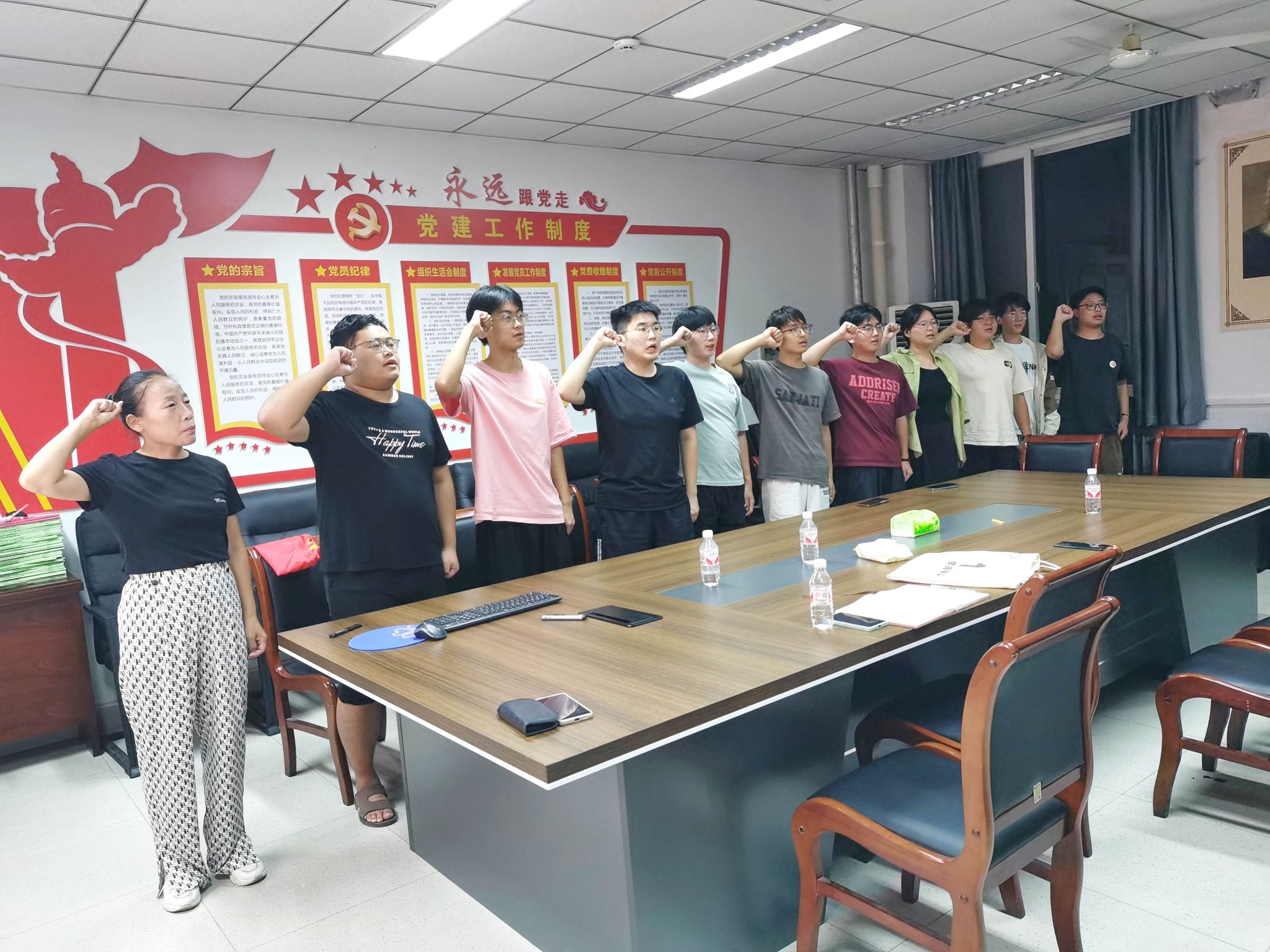 最后,全体党员在张婷同志带领下,面向鲜红的党旗,重温入党誓词,用铿锵有力的声音再次向党作出庄严承诺——必将铭记国耻,知耻而勇行!