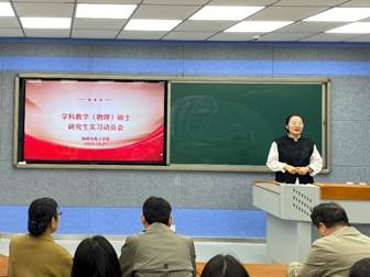 2024年10月21日,bellbet贝博艾弗森官方网站学科教学(物理)硕士研究生实习动员会在bellbet贝博艾弗森官方网站C楼201教室召开,副院长李新营、学科教学课题组相关指导老师杜明荣、刘平安、向兵、张抗抗及全体学科教学(物理)硕士生参会。会议由张抗抗老师主持。